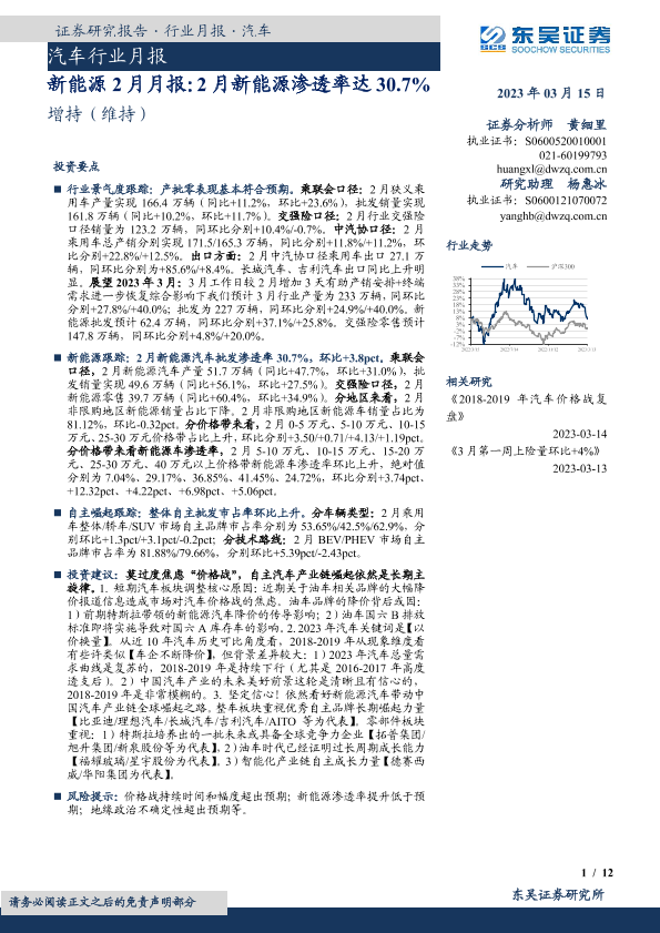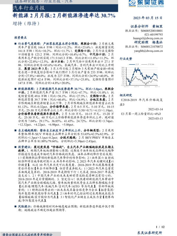 【东吴证券】【20230315】汽车行业月报:新能源2月月报:2月新能源渗透率达30.7%-12页