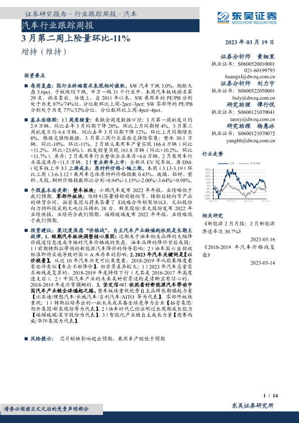 【东吴证券】【20230319】20230319-东吴证券-汽车行业跟踪周报:3月第二周上险量环比-11%-14页