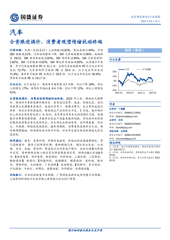 【国盛证券】【20230319】20230319-国盛证券-汽车行业周报:合资跟进调价,消费者观望情绪扰动终端-19页