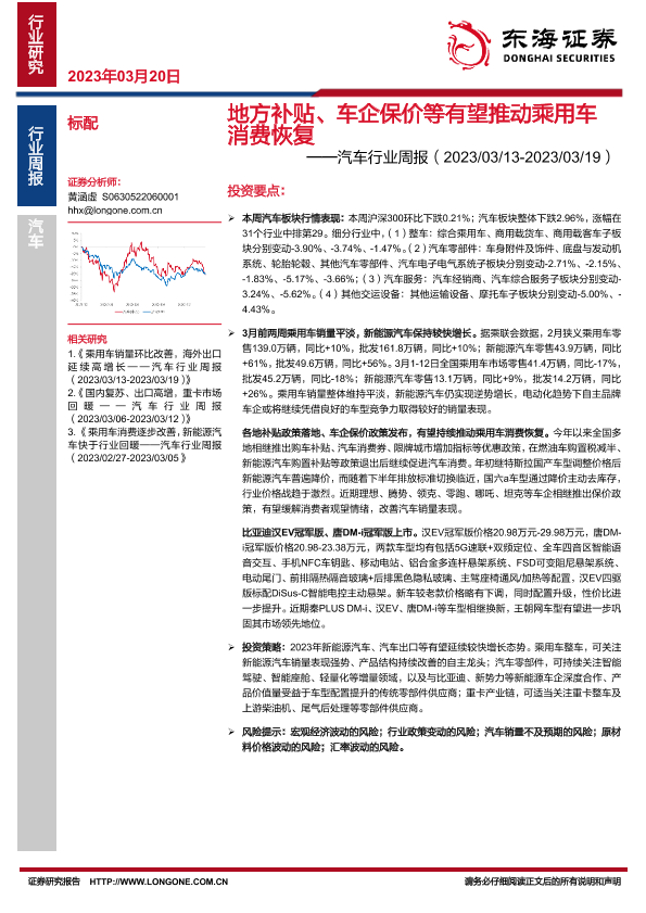 【东海证券】【20230320】地方补贴、车企保价等有望推动乘用车消费恢复-12页