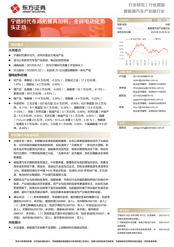 【东方证券】【20230320】20230320-东方证券-新能源汽车产业链行业行业周报:宁德时代布局拓展再加码,全球电动化势头正劲-14页