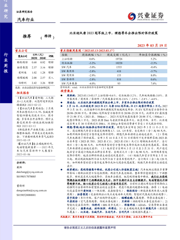 【兴业证券】【20230319】比亚迪汉唐2023冠军版上市,理想等车企推出限时保价政策-28页