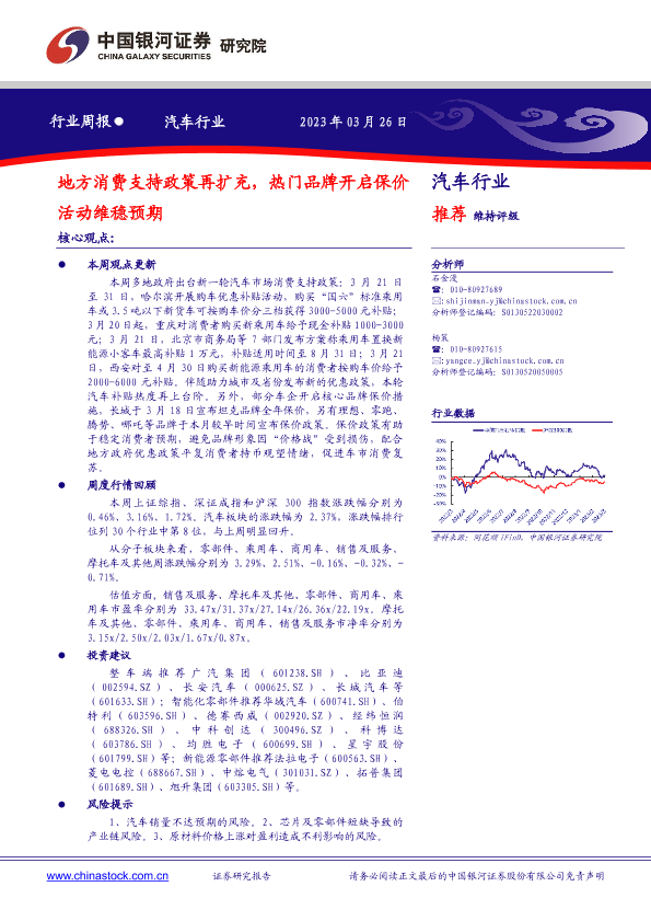 【银河证券】【20230326】20230326-中国银河-汽车行业周报:地方消费支持政策再扩充,热门品牌开启保价活动维稳预期-12页