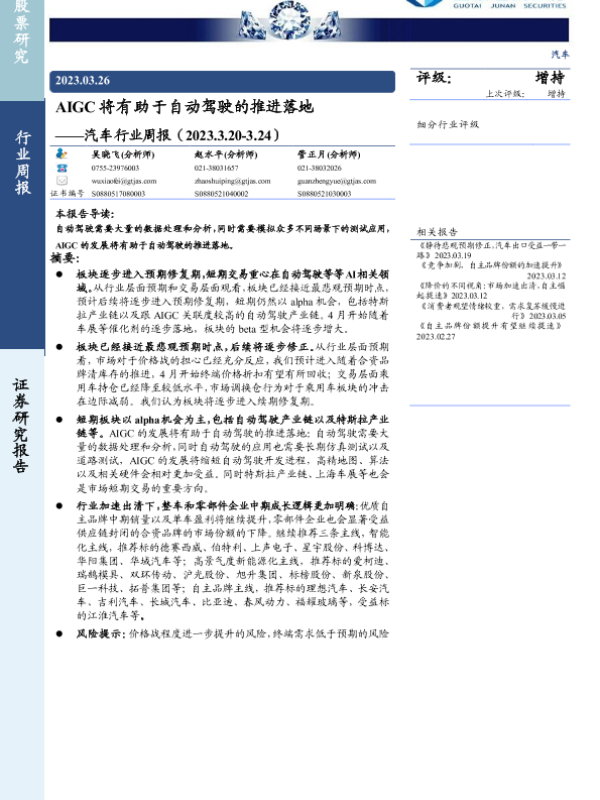 【国泰君安证券】【20230326】AIGC将有助于自动驾驶的推进落地-25页