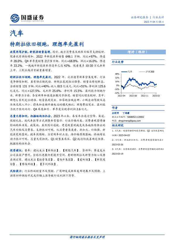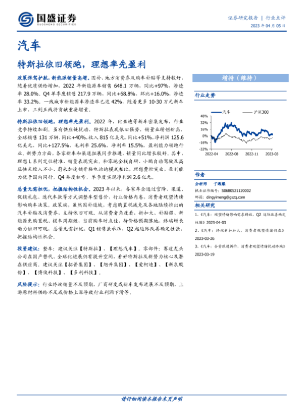 【国盛证券】【20230405】汽车:特斯拉依旧领跑,理想率先盈利-11页