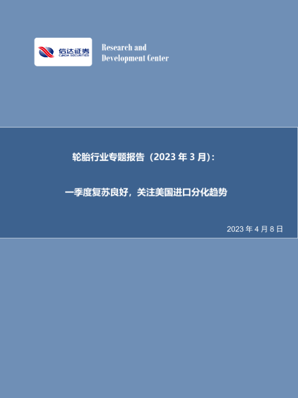 【信达证券】【20230408】20230407-信达证券-轮胎行业专题报告(2023年3月):一季度复苏良好,关注美国进口分化趋势-22页