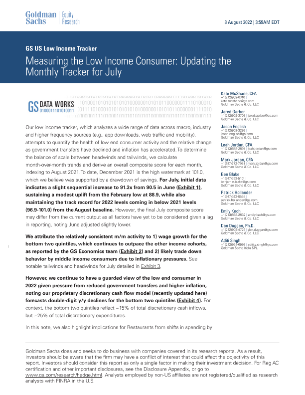 【Goldman Sachs】【20220808】Measuring the Low Income Consumer Updating the Monthly Tracker for July-19页
