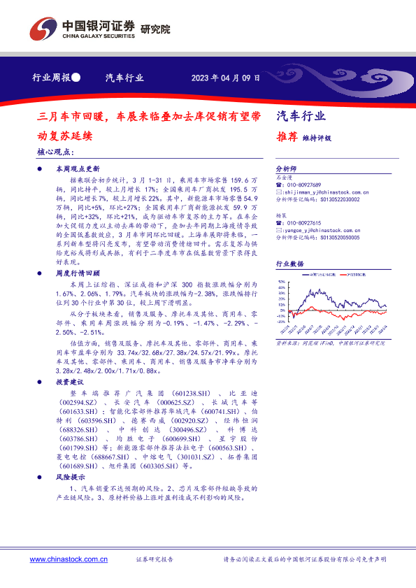 【银河证券】【20230409】20230409-中国银河-汽车行业行业周报:三月车市回暖,车展来临叠加去库促销有望带动复苏延续-12页