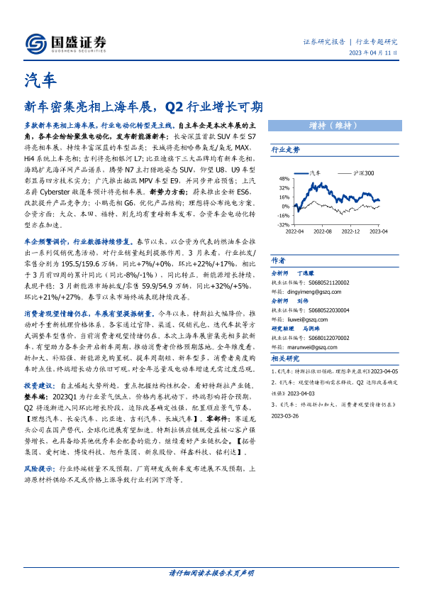 【国盛证券】【20230411】新车密集亮相上海车展,Q2行业增长可期-18页