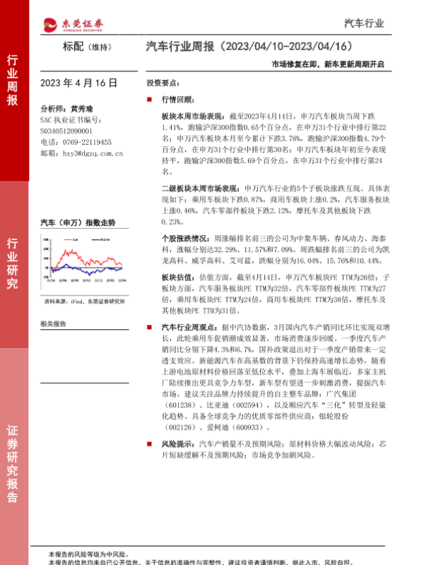 【东莞证券】【20230416】汽车行业周报:市场修复在即,新车更新周期开启-11页