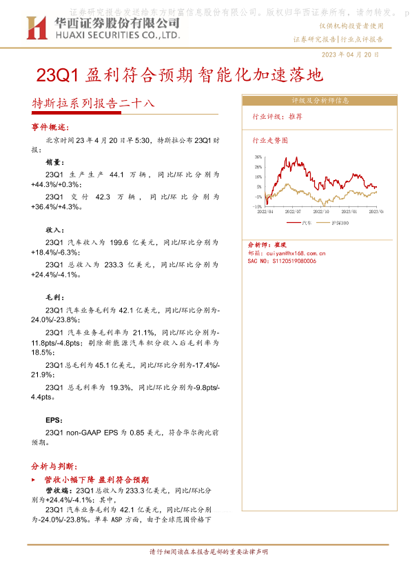 【华西证券】【20230420】20230420-华西证券-特斯拉系列报告二十八:23Q1盈利符合预期 智能化加速落地-11页