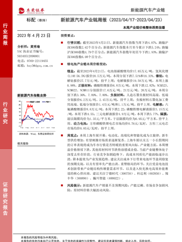 【东莞证券】【20230423】20230423-东莞证券-新能源汽车产业链周报:本周产业链价格整体跌势放缓-13页