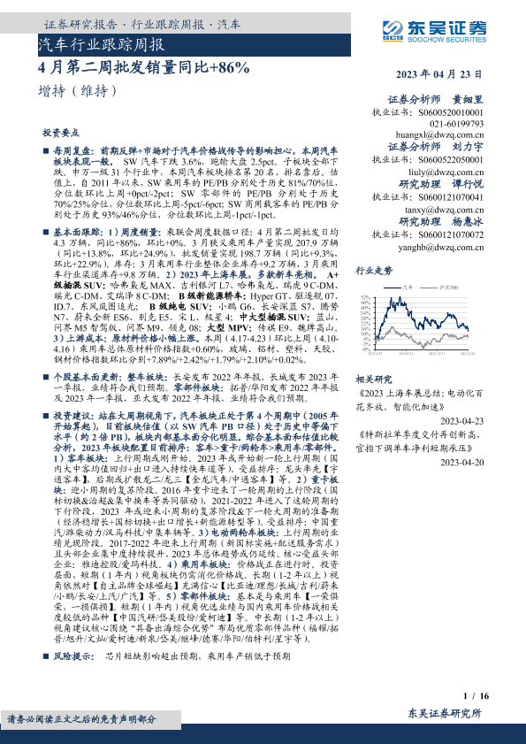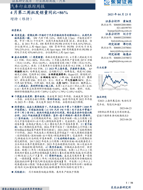【东吴证券】【20230423】20230423-东吴证券-汽车行业跟踪周报:4月第二周批发销量同比+86%-16页