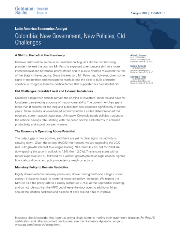 【Goldman Sachs】【20220805】Colombia New Government, New Policies, Old Challenges-22页