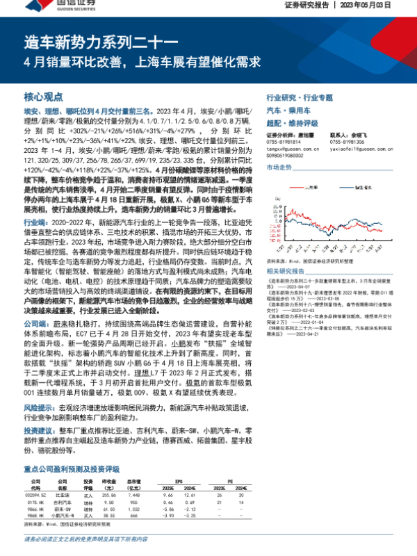 【国信证券】【20230503】造车新势力系列二十一:4月销量环比改善,上海车展有望催化需求-32页