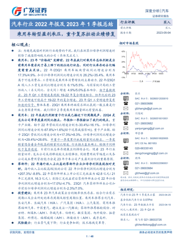 【广发证券】【20230504】汽车行业2022年报及2023年1季报总结:乘用车转型盈利承压,重卡复苏拉动业绩修复-46页