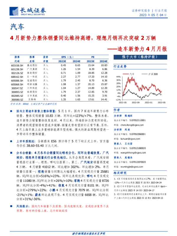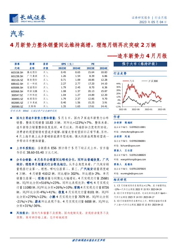 【长城证券】【20230504】20230504-长城证券-造车新势力4月月报:4月新势力整体销量同比维持高增,理想月销再次突破2万辆-11页