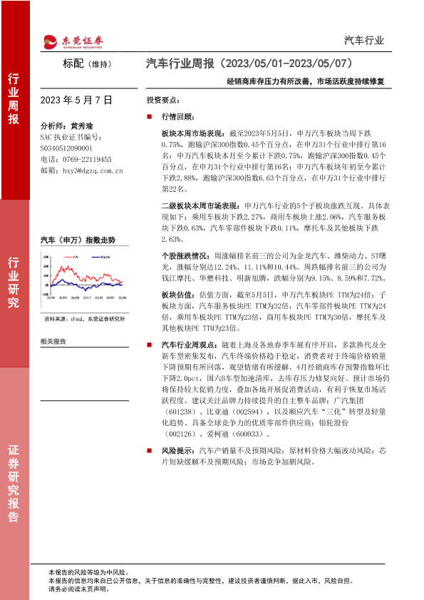 【东莞证券】【20230507】汽车行业周报:经销商库存压力有所改善,市场活跃度持续修复-11页