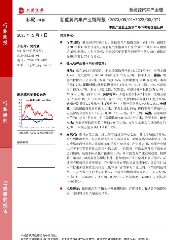 【东莞证券】【20230507】新能源汽车产业链周报:本周产业链上游多个环节价格企稳反弹-13页