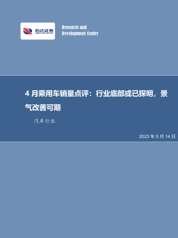 【信达证券】【20230514】4月乘用车销量点评:行业底部或已探明,景气改善可期-12页