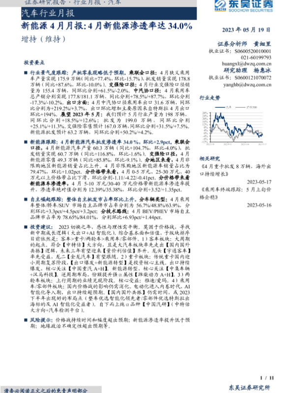 【东吴证券】【20230519】新能源4月月报:4月新能源渗透率达34.0%-11页