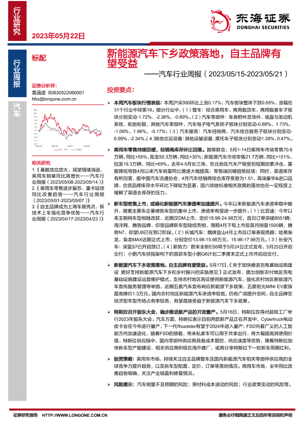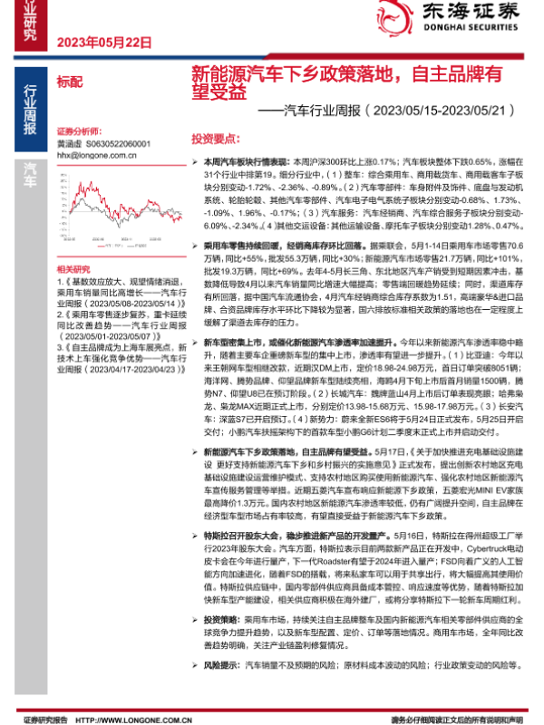 【东海证券】【20230522】新能源汽车下乡政策落地,自主品牌有望受益-12页