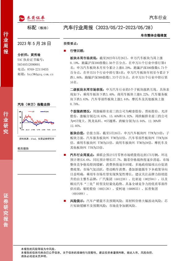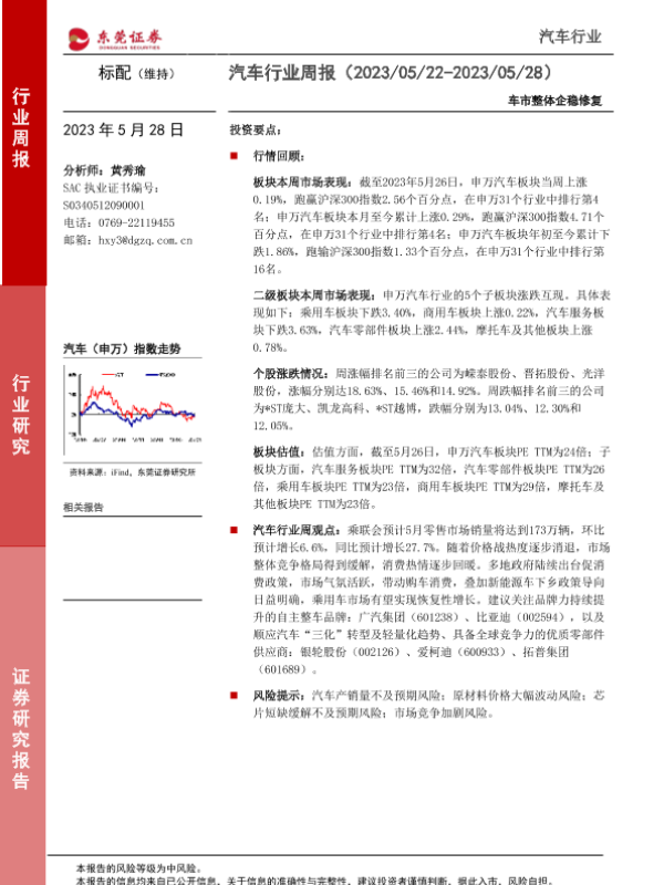 【东莞证券】【20230528】汽车行业周报:车市整体企稳修复-12页
