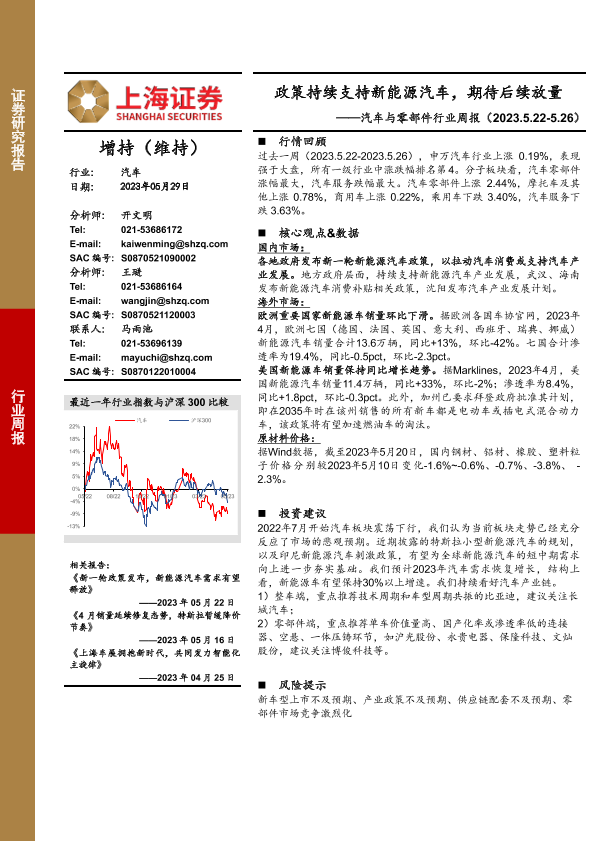 【上海证券】【20230529】汽车与零部件行业周报:政策持续支持新能源汽车,期待后续放量-16页
