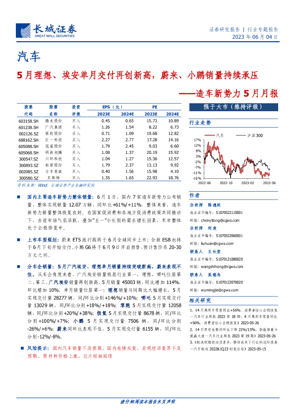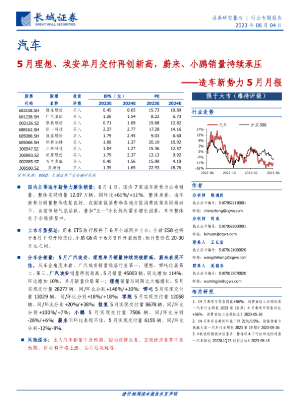 【长城证券】【20230604】20230604-长城证券-汽车行业造车新势力5月月报:5月理想、埃安单月交付再创新高,蔚来、小鹏销量持续承压-11页