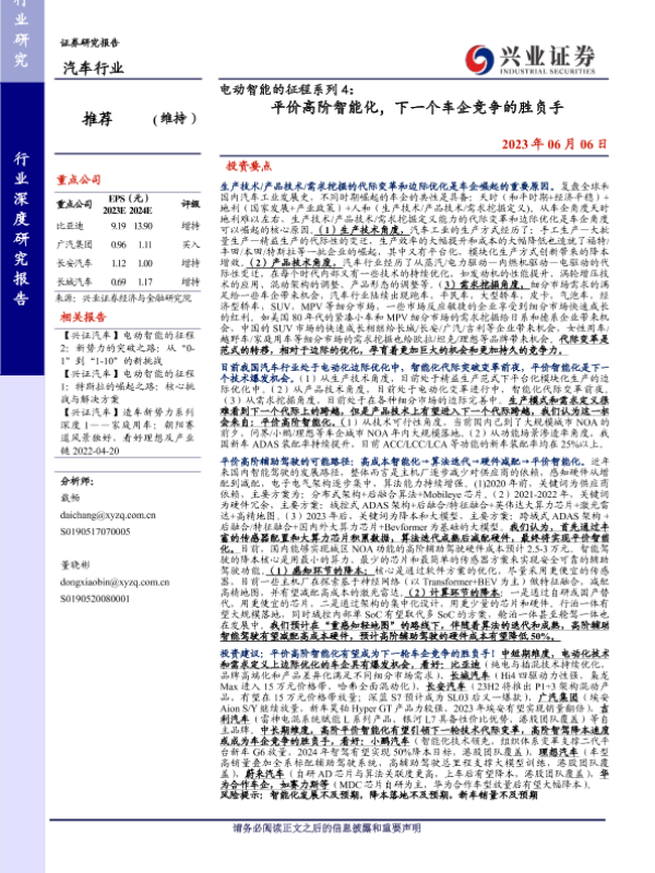 【兴业证券】【20230606】20230606-兴业证券-汽车行业深度研究报告:电动智能的征程系列4:平价高阶智能化,下一个车企竞争的胜负手-43页