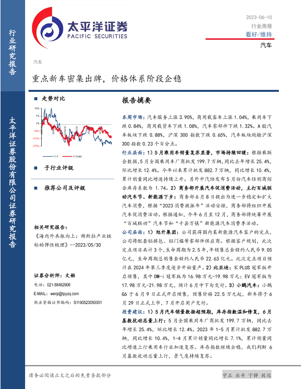 【太平洋证券】【20230610】20230610-太平洋-汽车行业周报:重点新车密集出牌,价格体系阶段企稳-23页