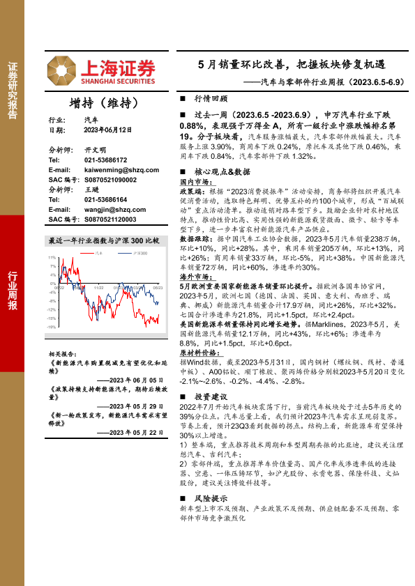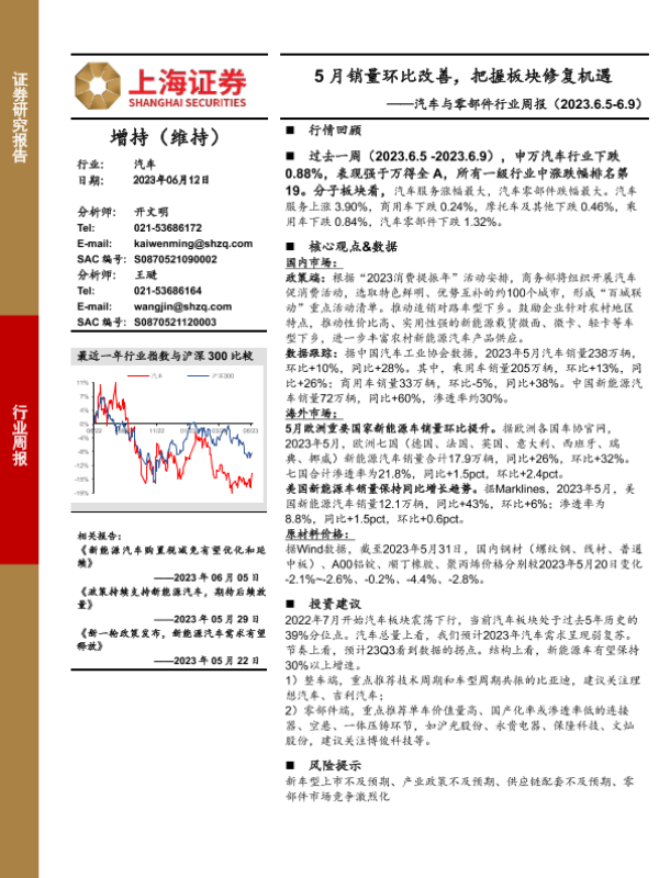 【上海证券】【20230612】5月销量环比改善,把握板块修复机遇-16页