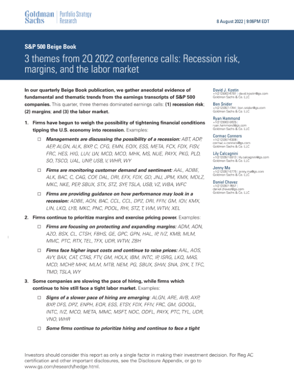 【Goldman Sachs】【20220808】2Q 2022 conference calls Recession risk, margins, and the labor market-35页