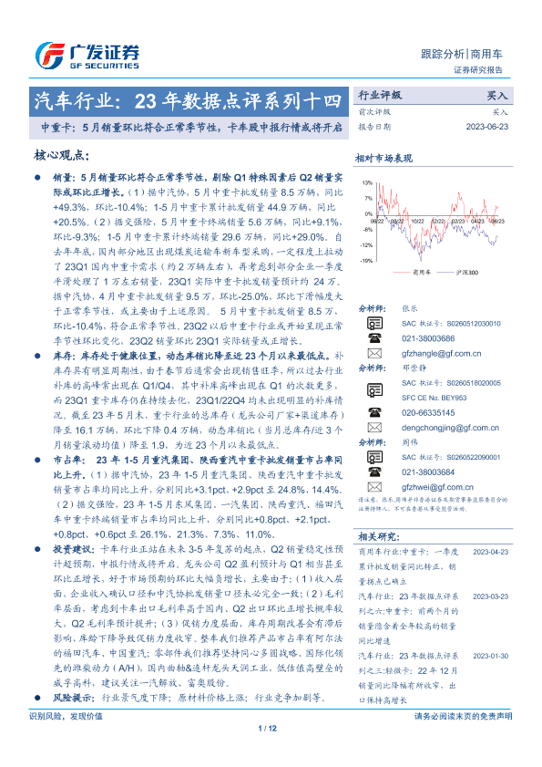 【广发证券】【20230623】汽车行业:23年数据点评系列十四-中重卡:5月销量环比符合正常季节性,卡车股中报行情或将开启-12页