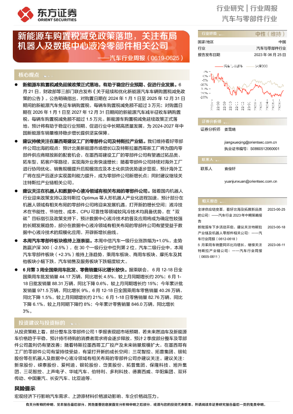 【东方证券】【20230625】20230625-东方证券-汽车行业周报:新能源车购置税减免政策落地,关注布局机器人及数据中心液冷零部件相关公司-15页