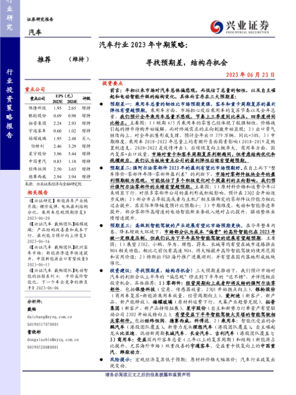 【兴业证券】【20230623】汽车行业2023年中期策略:寻找预期差,结构存机会-43页