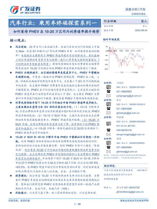 【广发证券】【20230624】汽车行业:乘用车终端探需系列一:如何看待PHEV在10-20万区间内的渗透率提升趋势-25页