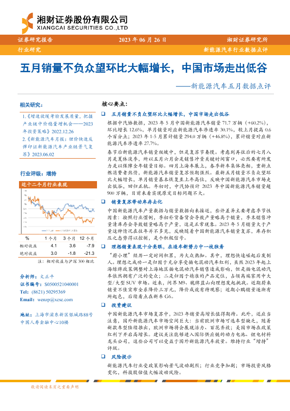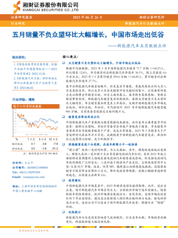 【湘财证券】【20230626】20230626-湘财证券-新能源汽车五月数据点评:五月销量不负众望环比大幅增长,中国市场走出低谷-18页
