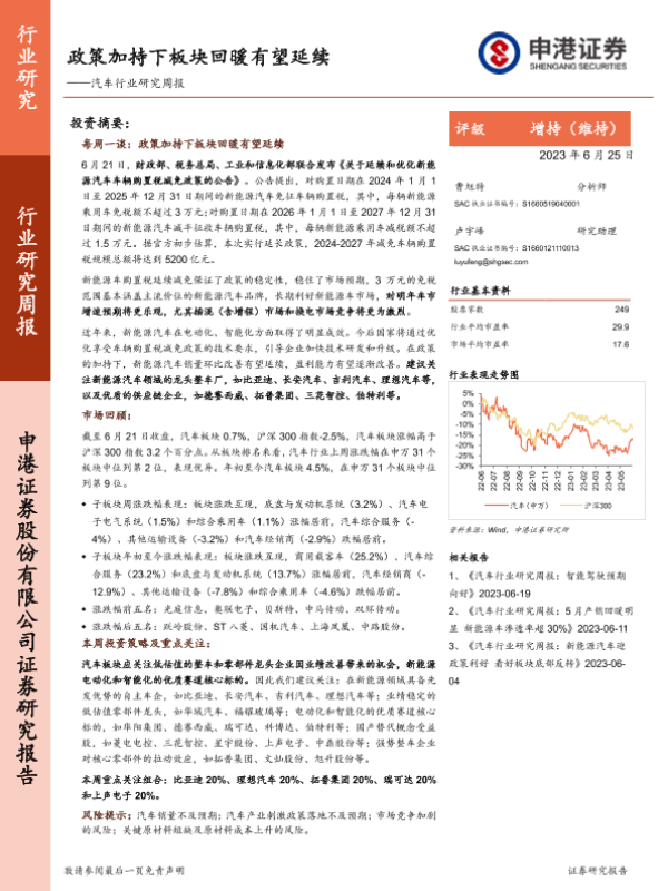【申港证券】【20230625】政策加持下板块回暖有望延续——汽车行业研究周报-14页
