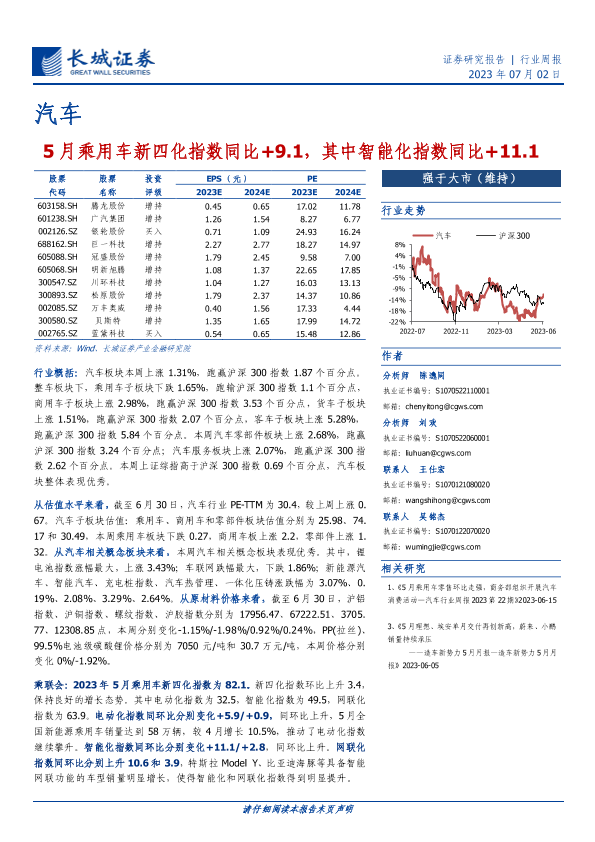 【长城证券】【20230702】20230702-长城证券-汽车行业周报:5月乘用车新四化指数同比+9.1,其中智能化指数同比+11.1-11页