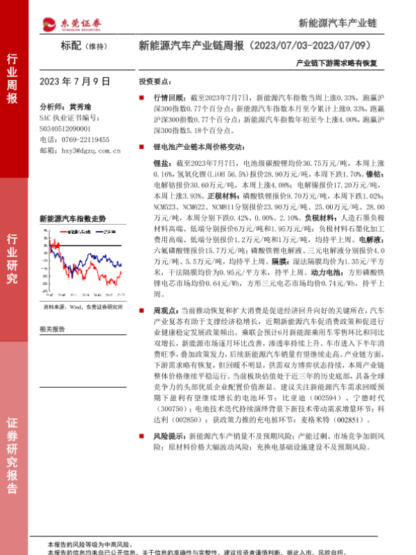 【东莞证券】【20230709】新能源汽车产业链周报:产业链下游需求略有恢复-13页