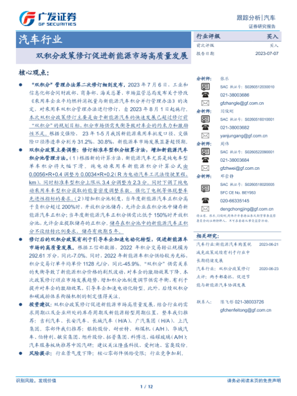 【广发证券】【20230707】双积分政策修订促进新能源市场高质量发展-12页