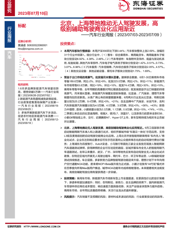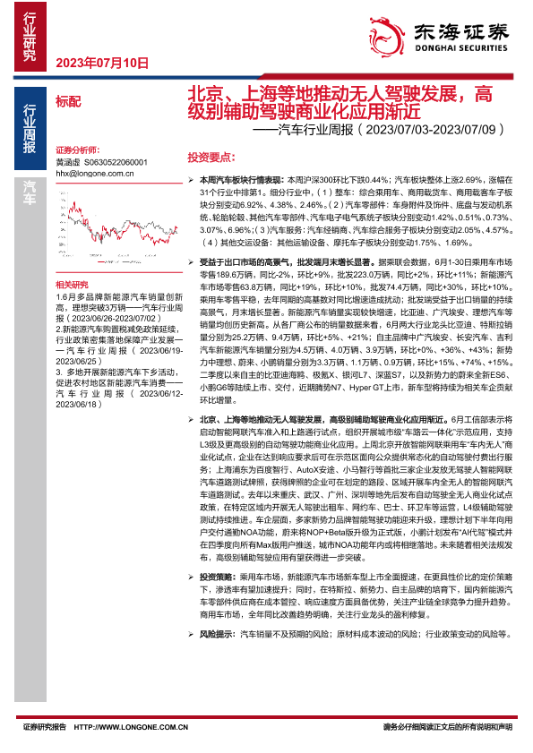 【东海证券】【20230710】北京、上海等地推动无人驾驶发展,高级别辅助驾驶商业化应用渐近-14页
