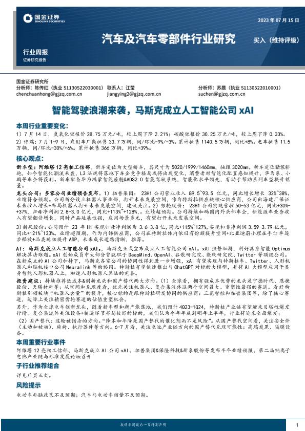 【国金证券】【20230715】汽车及汽车零部件行业研究:智能驾驶浪潮来袭,马斯克成立人工智能公司xAI-15页