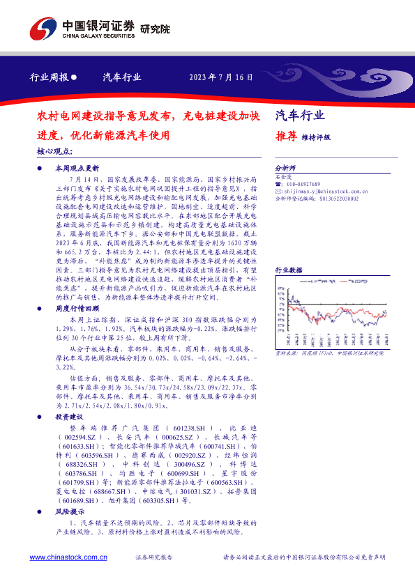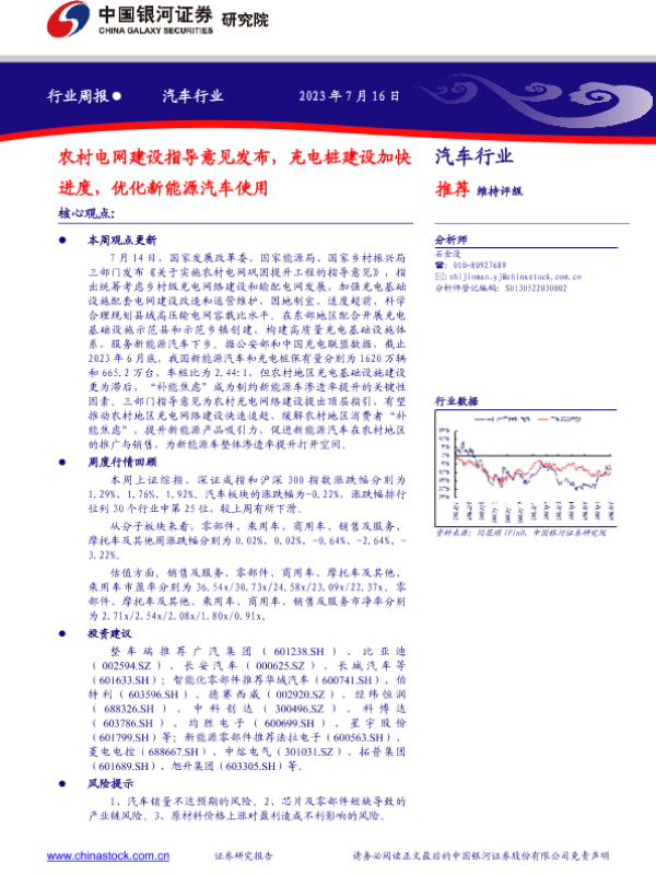 【银河证券】【20230716】汽车行业周报:农村电网建设指导意见发布,充电桩建设加快进度,优化新能源汽车使用-12页