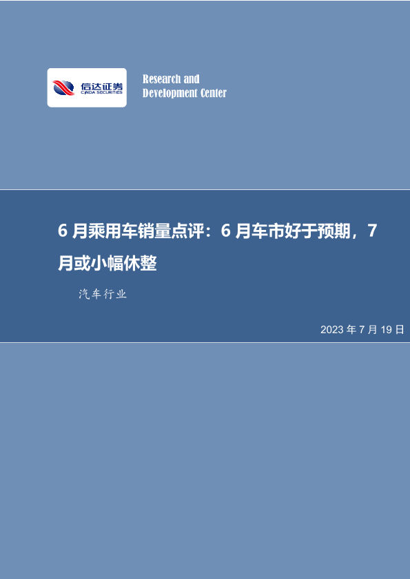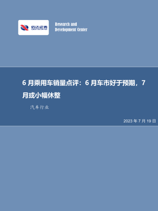 【信达证券】【20230719】6月乘用车销量点评:6月车市好于预期,7月或小幅休整-12页