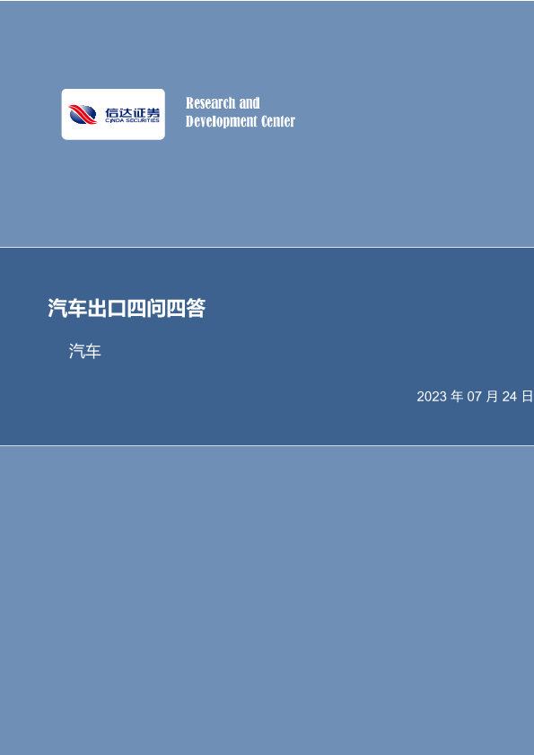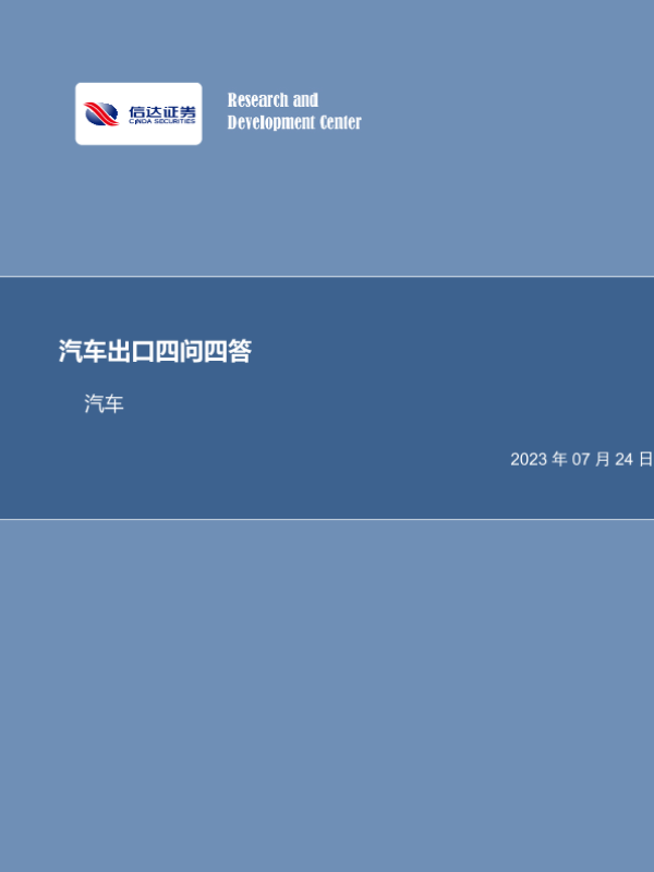 【信达证券】【20230724】汽车行业专题研究(普通):汽车出口四问四答-13页