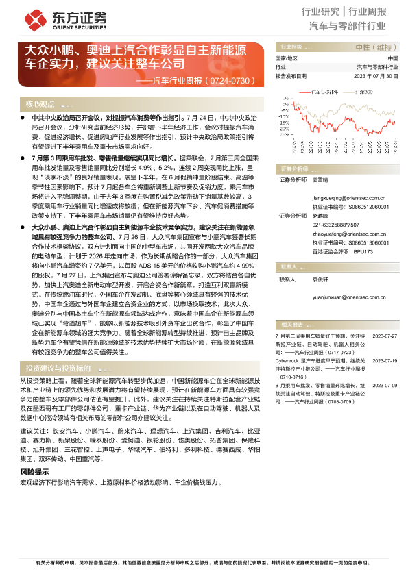 【东方证券】【20230730】20230730-东方证券-汽车行业周报:大众小鹏、奥迪上汽合作彰显自主新能源车企实力,建议关注整车公司-16页