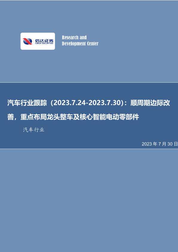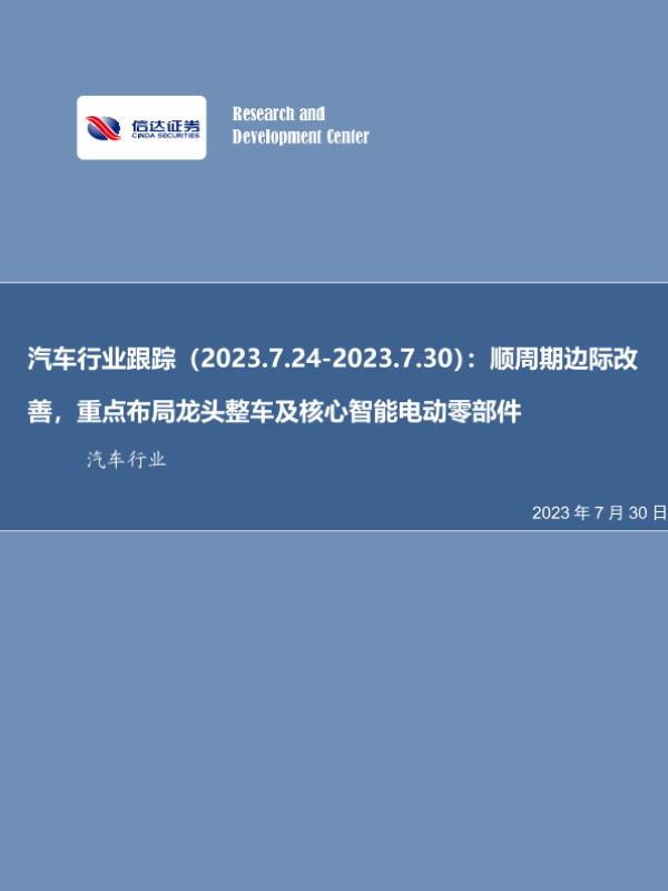 【信达证券】【20230730】20230730-信达证券-汽车行业跟踪:顺周期边际改善,重点布局龙头整车及核心智能电动零部件-20页