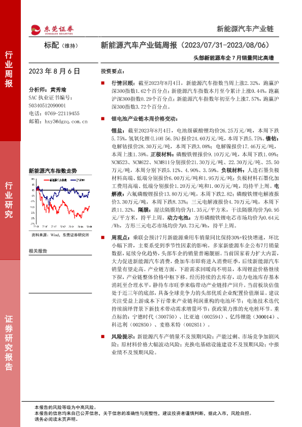【东莞证券】【20230806】新能源汽车产业链周报:头部新能源车企7月销量同比高增-13页